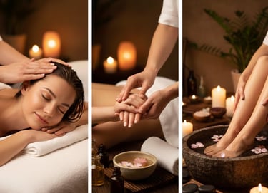 1 heure 30 (90 min) Rituel Approfondi. Permet d'intégrer des techniques spécifiques sur chaque zone (réflexologie superficielle des pieds, travail poussé sur les avant-bras/mains). La durée idéale pour une expérience enveloppante et un impact profond sur le système nerveux. ( Bain de pieds compris)
